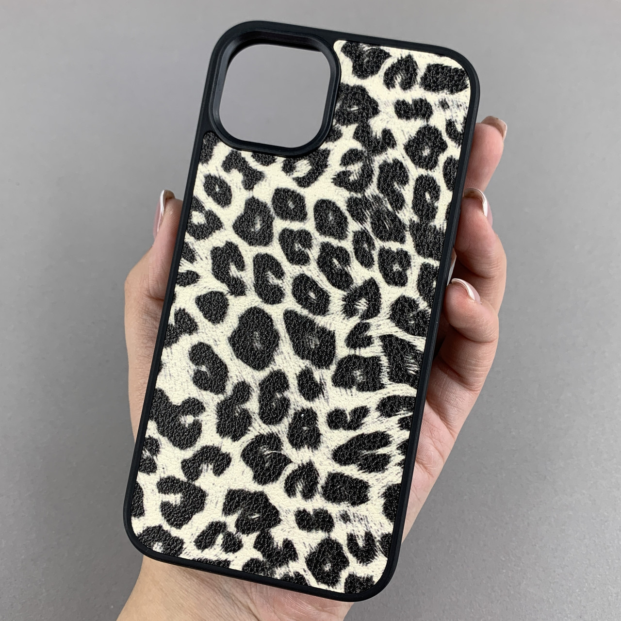 Чохол для Apple iPhone 13 чохол з леопардовим принтом на телефон айфон 13 чорний з білим a01o